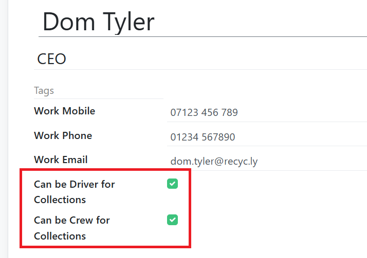 - You can choose who shows as Drivers and who shows as Crew in RecyclyERP's Employees app, which has two tick boxes: